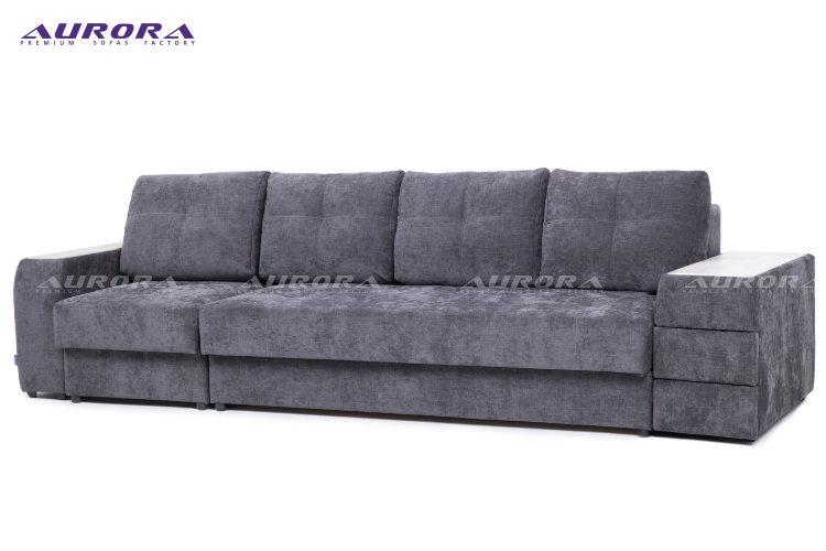 Вы легко сможете разложить диван с помощью механизма «тик-так» со стальными направляющими AURORA STEEL. А с ортопедическим наполнением AURORA FORM ваш сон на диване будет здоровым и крепким. Ниши для хранения расположены под посадочным местом и в подлокотниках.