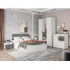 — Спальный гарнитур выполнен в цветах: «Ясень Анкор Темный» или «Ясень Анкор Светлый» с фасадами, крышками и накладками из МДФ в пленке ПВХ цвета «Мрамор лайт» или «Мрамор дарк» соответственно.