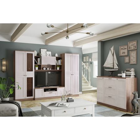 Лестер - модульный набор мебели для Вашей гостиной. Светлые, теплые оттенки мебели визуально расширят пространство комнаты. Цвет корпуса - ясень шимо светлый, цвет фасад - бодега светлая. Стекла выполнены в оттенке бронза. Такое сочетание оттенков привнесет в Вашу гостиную уют и теплую атмосферу.