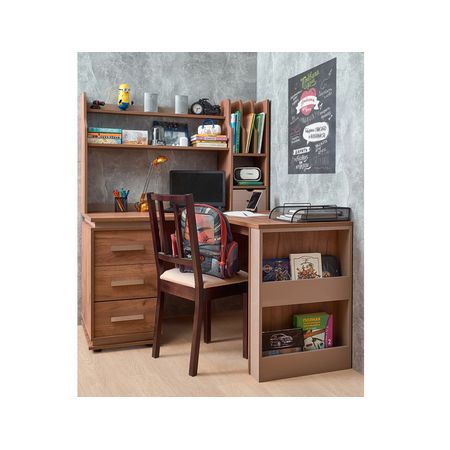 Рабочее место подростка должно быть правильно оборудовано. Домашние задания легче и удобнее будет выполнять за вместительным письменным столом. В размещении и хранении всего необходимого для учебы ребенку помогут дополнительные модули коллекции Nature: шкаф-надстройка, стеллаж-надстройка, стол приставной угловой.