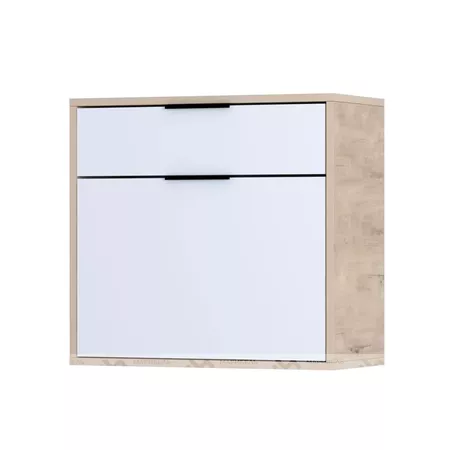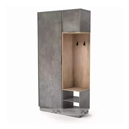 В дизайне мебели для прихожей Лофт Визит-3, используется актуальное сочетание древесных текстур и камня, белого цвета. Разнообразие модулей коллекции позволяет создать функциональный интерьер для помещения любого размера.